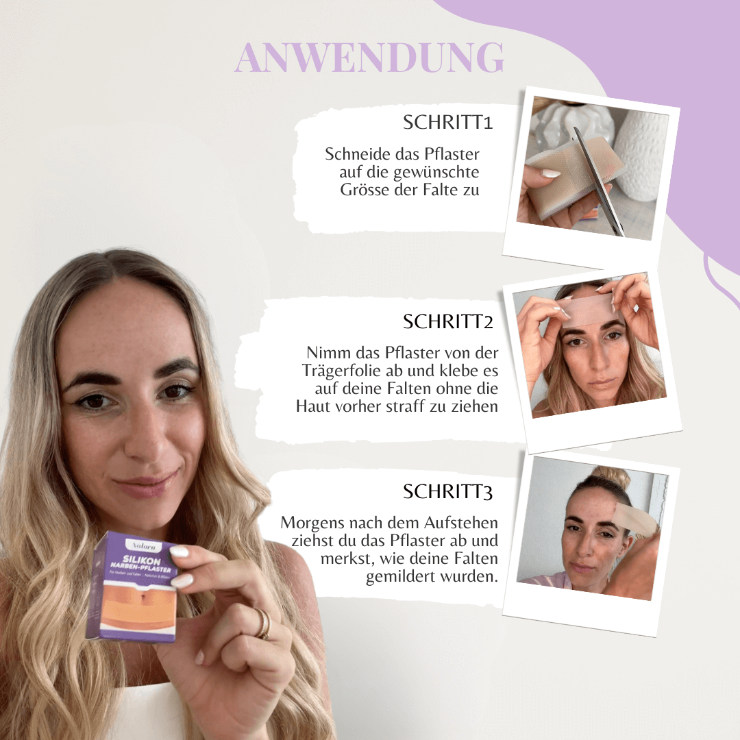Wir wissen, wie viele Marken mit leeren Versprechen werben. Deshalb gilt bei uns: Teste unser Silikon-Narbenpflaster gegen Falten 4 Wochen lang – ganz ohne Risiko.
